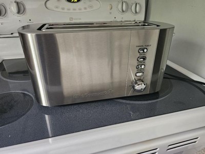 [This review was collected as part of a promotion.] Sleek 4 slice toaster. Looks great on the counter. My husband loves that it can fit his full slice of Turano bread. Shade settings work nicely and typically only have to put it down once for desired toastiness.