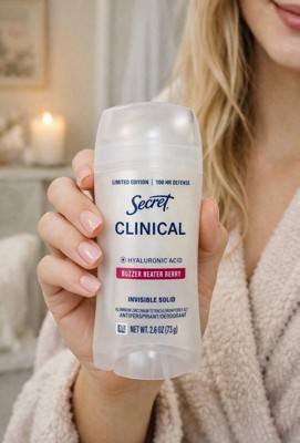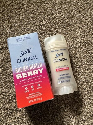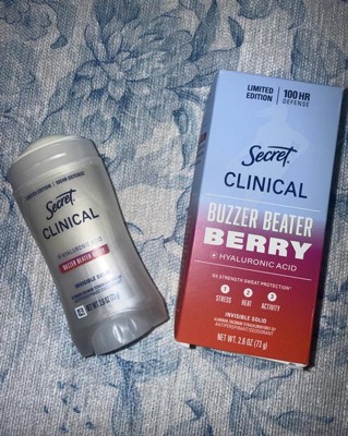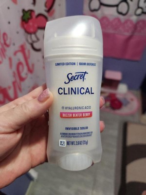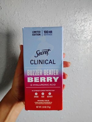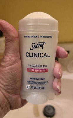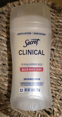 Secret Women's Clinical Strength 100HR Hyaluronic Acid Invisible Solid Antiperspirant Deodorant - Buzzer Beater Berry - 2.6oz