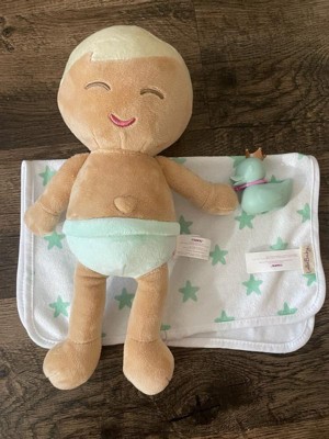 [This review was collected as part of a promotion.] My daughter and son absolutely adore this little bath stuffy. They take care of him and all the babies needs. I love that it was a baby boy stuffy. Soft and plush. Washes easily and accessories are cute.