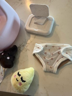 This is such a cute and fun little toy for any toddler girl. Our daughter loves playing with it with her babies. She has so much fun pretending it's potty time. The seat fits pretty much any of her dolls and even makes flushing and potty sounds. She loves changing the babies diaper and even using the pretend wipes to make her babies all nice and clean. It's also an incentive for her to start using the potty just like her dolls. The two little poop and pee plushies are very cute as well.