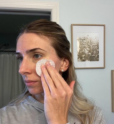 [This review was collected as part of a promotion.] The first two photos are of the pads which are like pillows and they feel great on the skin. I love that there is a morning and evening pad. My skins feels so refreshed in the mornings and extra moisturized at night. It smells clean and fresh. The 3rd photo was what it cleans even after I had washed my face. No irritation at all.