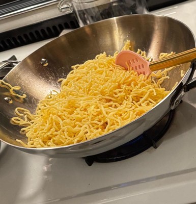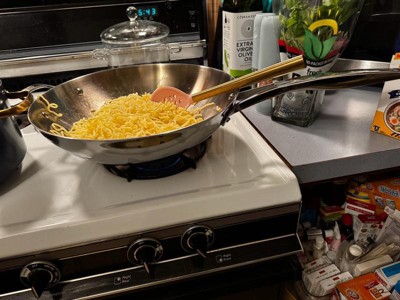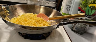 [This review was collected as part of a promotion.] This wok is very heavy and very good quality. It cleans up well but also cooks well. The wok is super versatile with how it’s used. We like to use it for spaghetti sauce since it’s so large.