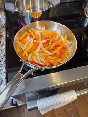 [This review was collected as part of a promotion.] I was impressed with the sturdy construction of this pan and felt it was a great size that I’ve been reaching for in my everyday cooking. I was actually in search of a stainless steel pan to avoid any toxic chemicals and this site bill perfectly. I’m planning on getting a couple more pots and pans from the set to complete my collection! It has been easy to clean and a great addition!