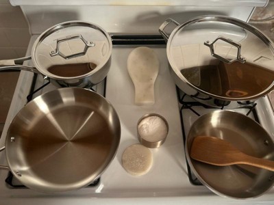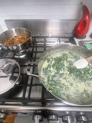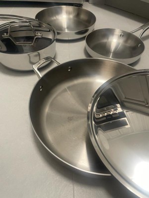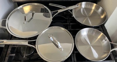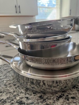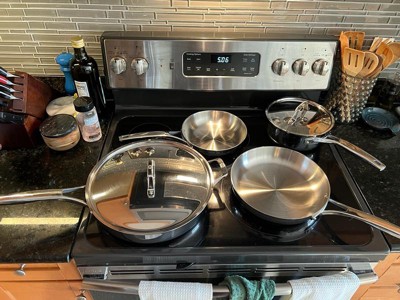[This review was collected as part of a promotion.] This set is craftsmanship refined — mirror-polished stainless that sears evenly and responds on cue. From the 8" and 10" fry pans to the 5-quart sauté and 2.5-quart saucepan with covers, each piece feels balanced in hand and built for daily ritual. The experience is quietly luxe: solid, well-weighted pans that move from simmer to sear without hot spots, with rolled rims for tidy pours and stay-cool handles that keep control graceful. Cleanup is where it charms — a quick deglaze lifts fond in seconds, and a brief soak and swipe restores the shine. No coating to baby, no fuss; just steel that releases easily and looks pristine meal after meal.