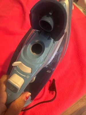 [This review was collected as part of a promotion.] The Hamilton Beach Steam Iron is a nice blue color and pretty sleek with a lot of options! It's like an iron on steroids! It's very helpful and convenient for a person like me who does their own laundry but shells out money for dry cleaning for my work shirts. It's lightweight and has a retractable cord with a cool button that retracts the cord back, which is helpful for a clumsy guy like me! It doesn laundry room or even in my bedroom or closet. The directions are simple and straightforward. They are easily interpreted for someone who never used an iron. There are multiple settings for your use; minimum, synthetics, silk/wool, and button as well as a self clean button. The maximum and minimum fill line is highlighted for no over or under filling up. The iron heats up pretty quickly and holds the heat nicely d steam iron too. I really recommend this iron if you are in the market for one!