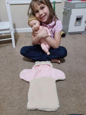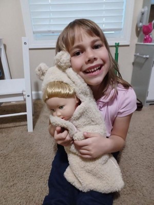 [This review was collected as part of a promotion.] This 14” baby doll in cuddler wrap is adorable! She is made so well and her wrap is so realistic. My daughter carries her around the house and into the car like a real baby! I’d definitely recommend!