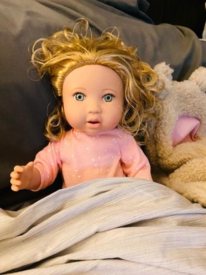 [This review was collected as part of a promotion.] This doll is absolutely adorable. It has the prettiest eyes. I was surprised at how nice this is. It’s the perfect size, and fits in our doll stroller. It has beautiful silky hair. Dont mind it in this pic, my youngest took the ponytail out, and had the baby ready for bed, so it looked a bit crazy. I’m so impressed by this doll, that I’ll definitely be buying more from this brand