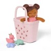 LullaBaby Plush Baby Bath Doll with Bath Toys in Pink Basket
