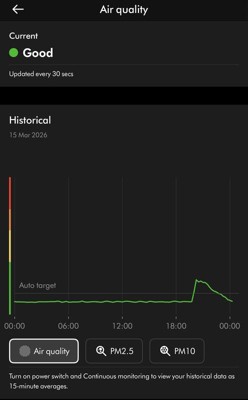 Disappointed with this machine. Data is fragmented, operation suspect. Shows much higher pollution than the Cool machines I have. Sometimes, the AQ is worse than the ambient values.