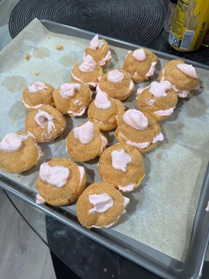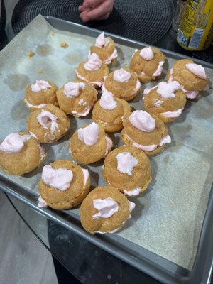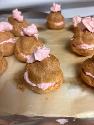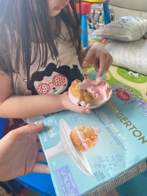 [This review was collected as part of a promotion.] This was a fun Creme puff kit to make. Mine definitely aren't as pretty as the picture but they still tasted yummy. They were also really simple to make. I also loved that the whipped frosting was pink, that is cute!