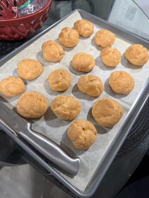 [This review was collected as part of a promotion.] I had a good experience making the Betty Crocker Crème Puffs. The package included everything you need, including the piping bag and wax paper, which was a nice touch. The puffs were quick and easy to make, and the process didn’t take much time at all. However, we did have a bit of trouble with the crème — it turned out a bit too thin to fill the puffs, so we ended up dipping them in it instead. Still, the end result was quite tasty, and they smelled really nice!