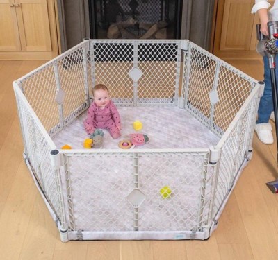 Toddleroo by North States Superyard Nook 6-Panel with Cloud Securemat Baby Gate 66" - Light Gray