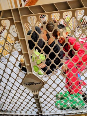 [This review was collected as part of a promotion.] Love this superyard. Gives a good amount of space for your child to play in if needing to contain them in an area for cleaning. The only disadvantage is it’s hard to close and open.