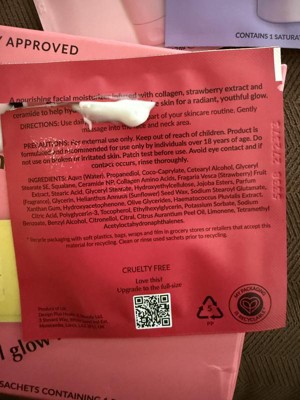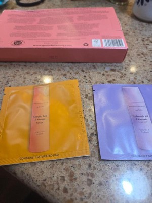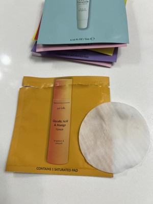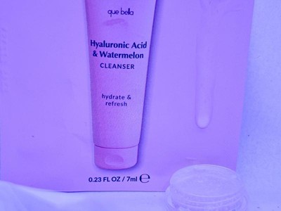 4.5 stars. I was happy to get a chance to test Que Bella Glow Essentials discovery set from the Hey Bullseye sampling program. It has 7 little pouches and is perfect for travel. It took me a while to review this since there are so many components. First of all, everything smells amazing, and the scents don't clash with one another. The package has a step by step guide for using the products. The cleanser a sort of sticky gel that's supposed to turn into a milk, which wasn't the case for me. It just was ok. My skin didn't feel very clean after using it. The Mango & Glycolic Acid toner smells sooo good, and felt refreshing, but didn't sting or make my skin feel tight. The facial mist was a little hard to use, because of the packet, and it has the faintest scent of the products I tried. It's a nice little moisture boost, and feels good. I think it would be nice in the summer. I used the Watermelon serum, since I use products with nicinamide, and I would buy this!! It smells great and does give you a little glow. The pineapple serum also smells good, and absorbs well. The Strawberry moisturizer has a very strong, long-lasting scent. I like it, so it wasn't a problem for me, but I was very aware of the fragrance. This moisturizer sat on my skin more than absorbing into it. While it didn't feel heavy, it also didn't make my skin feel very hydrated. It's always great to try smaller sizes of the products before buying, and I would skip several of these, but I would definitely buy several as well. The products are cruelty free and the packaging is recyclable.