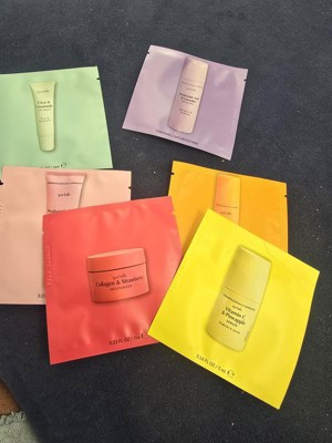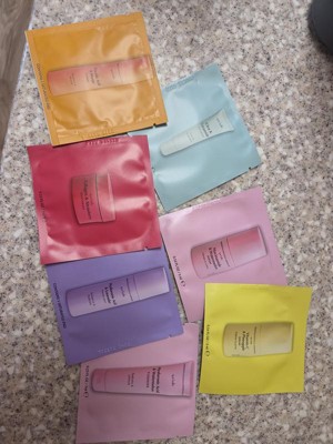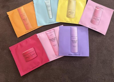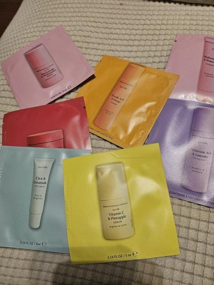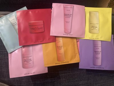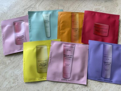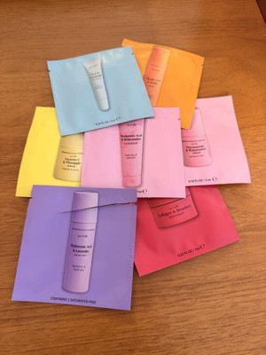 This is a nice sampler pack to try out a nice range of skincare products. With one sample it's hard to tell the effectiveness as it takes weeks to notice a real difference, however the sample sizes are generously portioned so most samples could potentially last a few days. I enjoyed the packaging, it was bright and cheerful. I found the strawberry scented moisturizer to feel very nice on my dry skin, however the scent felt a bit too artificial. I really enjoyed all of the citrus scents and found them to be light and refreshing. This is a great combo of staple skincare products and this sample kit is a great way to try some of the products before investing in an entire line. I wish more companies gave trial kits like this and it was very helpful to identify which ones I enjoyed the most and see how my skin reacted to each. Received free for review.