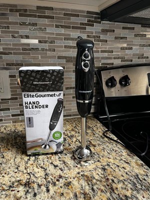 [This review was collected as part of a promotion.] This elite gourmet 2 speed hand blender is amazing! I have been wanting one for so long and I can't believe I didn't buy this before. It has been such a great help in the kitchen and makes cooking so much faster. I have used this little thing for so many different things. First off making homemade tomato soup, this made it fast and easy and I didn't have to let things cool down, I just plugged it in and blended everything together and it worked wonderfully. I have also used it for potato soup, refried beans, salad dressings and I've even used it to make my own oreo blizzard. I am so excited to use it for my next dinner which will be chile relanos which is going to save me time and a big mess clean up! Clean up is a breeze just detach the head and I always rinse it immediately even if I'm not washing it right away because it is a bit difficult to clean under the blades if food gets dried on. I definitely recommend this wonderful tool.