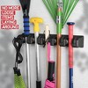 - Secure & Easy To Use Garden Tool Rack - The 5 slots have an easy-release design for quick retrieval. Renter friendly decor, They're non-slip, have soft rubber grids, and are strong enough to hold wet mops, heavy brooms and baseball bats.