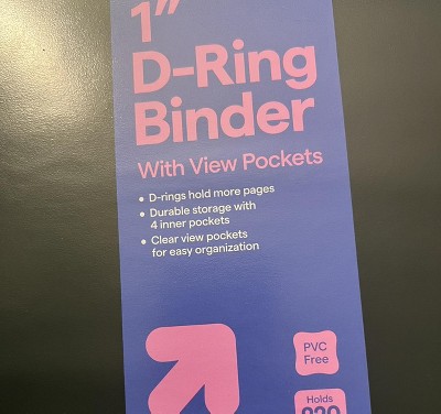 Keep it all together with the Clear View Durable Ring Binder from up&up. This smartly designed D-ring binder can hold more pages than a traditional round ring binder, giving you more room to store and organize your important documents. In addition to the center storage you expect from a ring binder, internal pockets let you store other objects that just don't lend themselves to hole punches.