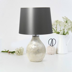 They say pearls go with everything, so this 18" table lamp is sure to be the perfect addition to complete your lighting needs! This light is built with a beautiful textured iridescent pearl base, and a silk-like light brown/dark champagne fabric shade. Simplicity mixed with modern, leaves a timeless impression suitable for all room types.