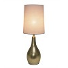 Simple yet sleek, this 19.5" table lamp will add the perfect touch of style to your home. With a smooth and traditional shaped base in Gold, this lamp offers a polished feel to top off your accent table, night stand, living room, bedroom or office! Paired up with a white fabric drum shade, this is the perfect fit for your home decorating needs.