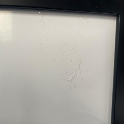 I was skeptical about buying this frame because a few reviews said a sticker leaves a mark on the plexicover but after buying it, I realized there's a film that needs to be peeled off of BOTH SIDES. The instructions don't mention this film but it's there. The frame is very good for the price point 👍