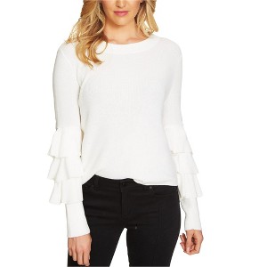 Additional Details: Textured casual knit sweater Pullover style with crew neckline Long sleeve with tiered ruffled layered Ribbed throughout