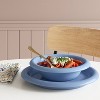 Add a touch of elegance to your dining table with this Stoneware Round Rim Dinner Plate from Room Essentials™. Made of stoneware in blue, this round dinner plate with a raised rim is great for serving a variety of appetizers, main courses and deserts. Best of all, the plate is both dishwasher and microwave safe for easy cleaning and reheating.