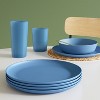 This 10.52-Inch Dinner Plate from Room Essentials™ makes a versatile addition to your collection of plates. Made with 20% post-consumer recycled plastic, this dinner plate is designed in a solid blue color. Great for serving a variety of dishes, it's dishwasher safe for easy cleaning and microwave safe for reheating only.