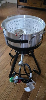 [This review was collected as part of a promotion.] I thought this was a great fryer from Chard,it performed really flawless out of the box and took less than 15 minutes to setup.The built in regulator on the hose along with the thermometer made it easy to control the temperature while frying which was really convenient.This fryer was built with good quality material,the steel stand is sturdy,durable,and not too heavy which makes for easy moving or transporting.The 10.5 qt aluminum pot heats up quick and can easily handle all your frying needs I loved it 10 out of 10!