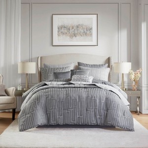 10 PCS King Luxury Jacquard Comforter Set Grey