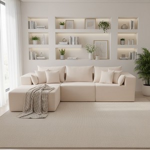105.51 in Corduroy Modular Beige L-shaped Sectional Sofas set With Ottoman