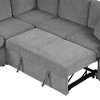 - Convertible Pull-Out Sofa Bed: Designed with versatility in mind, this sectional sofa seamlessly transforms into a comfortable sleeper with a simple pull-out mechanism. Ideal for overnight guests or relaxing during movie marathons, it offers a convenient and space-efficient solution.