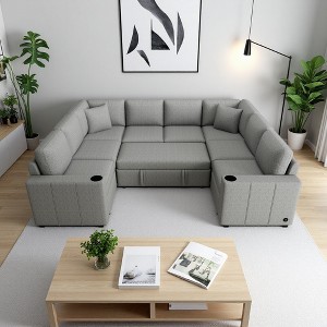107.1" Convertible Modular Sectional Sofa Bed with USB & Cup Holders