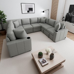 108.7" Convertible Modular Sectional Sofa Bed with USB & Cup Holders