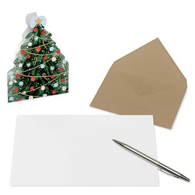 - These blank Christmas cards by American Greetings features the shape of a Christmas tree with beautiful decorations.