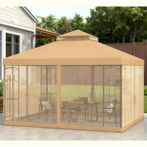 10ft × 11.8ft Outdoor Soft Top Gazebo with Mesh Netting and Shelves, Brown Steel Frame Patio Canopy for Backyard or Garden-3irtyhousy - 2 of 410ft × 11.8ft Outdoor Soft Top Gazebo with Mesh Netting and Shelves, Brown Steel Frame Patio Canopy for Backyard or Garden-3irtyhousy - 3 of 410ft × 11.8ft Outdoor Soft Top Gazebo with Mesh Netting and Shelves, Brown Steel Frame Patio Canopy for Backyard or Garden-3irtyhousy - 4 of 4