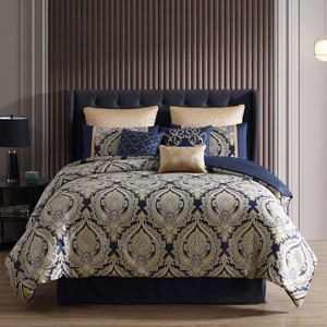 10pc King Barrett Comforter Set Navy - Riverbrook Home: Polyester Jacquard, Machine Washable, Includes Decorative Pillows & Euro Shams