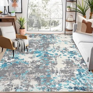Abstract Washable Area Rug, Non-Slip Low Pile Distressed Carpet, Soft Floor Cover for Bedroom, Office, or Dining Room