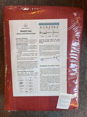 [This review was collected as part of a promotion.] I cannot wait to put this up come spring. When taken out of the box the shade sail feels sturdy and well made. The seams are all together. The color is rust orange. There are clear instructions on instillation in the package.
