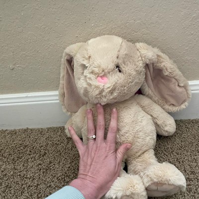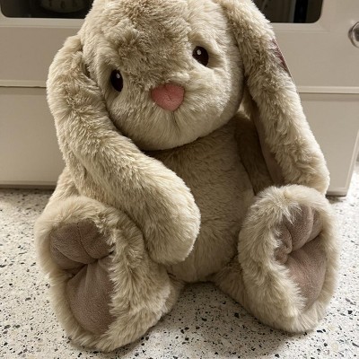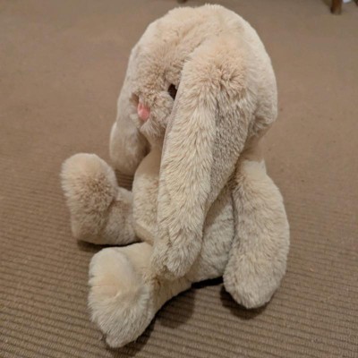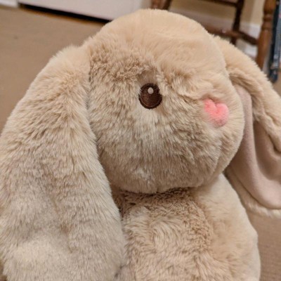 [This review was collected as part of a promotion.] This is an adorably, fun bunny stuffed animal that features large floppy ears. I love the cute tan color and pink little nose. It is made of a super soft and plush material. My daughter loves how squishy it is and loves to snuggle next to this bunny when sleeping or watching tv. She also loves to play with it!