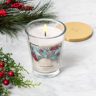 A fragrance like a snowy winter day, blending cool spruce with notes of sweet coconut, white lavender, and smooth amber.Soy wax blend infused with pure essential oilsClear glass jar with silver metal lid11.5 oz candle with approximately 40 hours of burn timeDesigned and poured in the USA, made with ingredients from around the world100% recyclable in partnership with TerraCycle