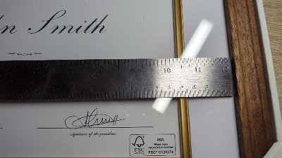 This frame looks incredibly high quality for an amazing price. I was so excited that I bought 3 of them only to take them home and find out the opening is not as advertised. The cutout is SMALL. The gold edge covers text on diplomas this frame advertises that it fits. I guess it was too good to be true. If your diploma is slightly smaller than average or the text is not near the edges this might be viable for some. Otherwise it is useless.