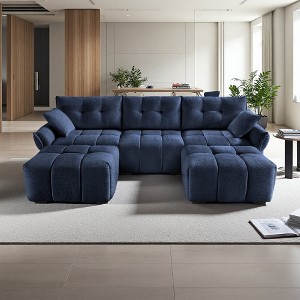 110" Chenille Modular U-Shaped Sectional Sofa with 2 Ottomans