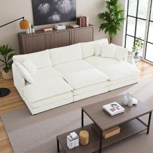 Premium Materials Crafted with a sturdy solid wood frame and upholstered in high-end, breathable chenille fabric, this modular sectional sofa combines durability with luxurious comfort. Filled with high-quality sponge, it conforms to your body to provide exceptional support and relaxation after a long day.