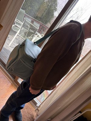Nice color. Perfect size for packing waters and adult capri suns for beach days. Cross body strap made it easy to carry.
