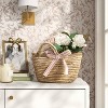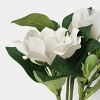 Enhance your home aesthetic with this Wrapped Gardenia Floral Bundle from Threshold™. This artificial bundle features an arrangement of gardenia floral stems, wrapped in a brown paper, and they are tied together with a white ribbon for a lovely look that blends well with a variety of decor styles. Great for indoor use, you can display this bundle alone or pair with other faux florals to create a stunning arrangement.