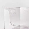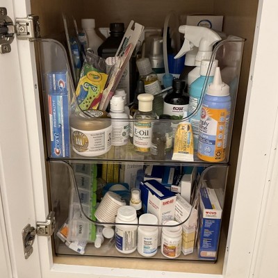 - 12in x 12in clear plastic bin lends a modern look