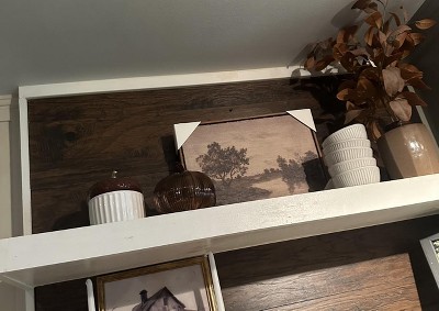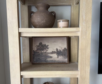 This wall art is one of those that I had to have from this new Fall hearth and hand collection. It checks all the boxes! Printed on a beautiful burlap canvas (no glass to cause a glare), the frame is a beautiful brown stained wood, and the landscape picture is stunning with no animals or people in it. It has beautiful warm moody tones. I love this new addition to my home.
