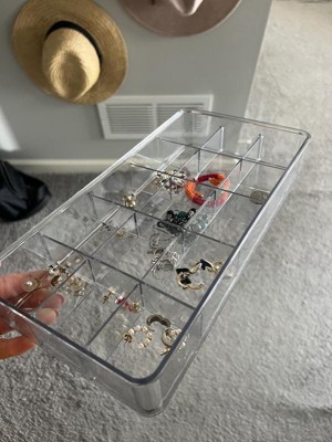 These trays are perfect for organizing! Great, sturdy, clear plastic. This size was just right in my jewelry drawer. I love that each divider is removable so you can create whatever size boxes you need. Awesome product with so many possible uses.