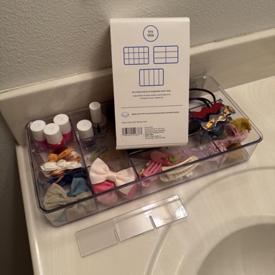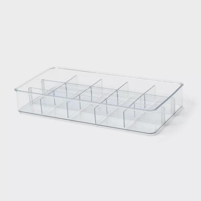 Declutter your space and organize your essentials with this Tray Organizer from Brightroom™. This tray organizer is made from recycled PET and features 15 compartments to hold your essentials. You can place it in the bathroom to keep shampoo bottles, skincare creams or lip balms or use it beside the dresser to organize nail polishes, hair clips, serums, and more. Best of all, this tray organizer is designed in a clear hue to blend effortlessly with a variety of decor styles and color palettes.